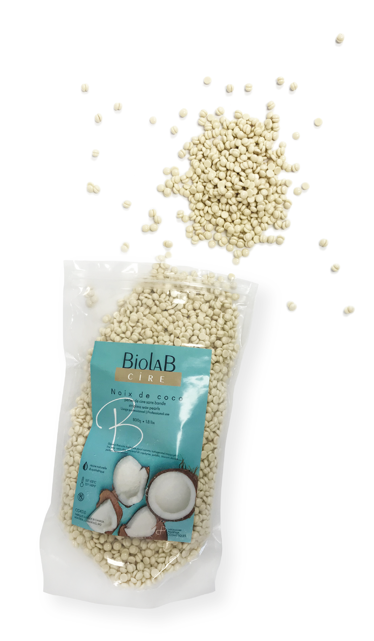 This new BIOLAB professional hard wax technology is particularly effective on the most sensitive skin. Its soothing formula diffuses a sweet fragrance of coconut. Its creamy and elastic texture allows easy applica- tion and extreme malleability.